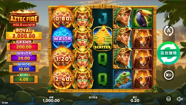 在眾多以集鴻運機制為核心的老虎機作品中,《烈焰阿茲特克 集鴻運》明顯走的是「高門檻、高回報」的重盤路線。遊戲以阿茲特克文明與火焰神廟為主題,視覺風格張力十足,5×4盤面結構搭配20條固定賠付線,第一眼就能感受到它並非主打短線回饋,而是將重心放在後段獎勵的層層解鎖。