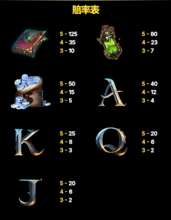在賠率配置上,遊戲同樣採取清楚的階級分工。高價值道具與書冊類符號,負責撐起單次中獎的上限;中段符號提供穩定補分;而字母符號則維持盤面連線流動性。整體結構並非平均給獎,而是刻意將回報集中在 Wild 補線、Scatter 延伸免費遊戲,以及彩金符號命中的少數關鍵時刻,讓玩家在每一轉中,都能感受到「下一次也許就輪到我」的高波動節奏。